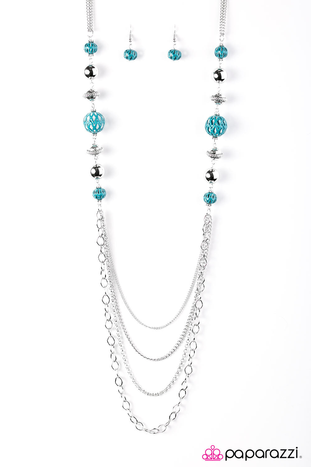 Painted in a blue finish, ornate beading trickles between shiny silver accents along a silver chain. Varying strands of silver chain drape across the bottom, adding depth and shimmer to the whimsical palette. Features an adjustable clasp closure.