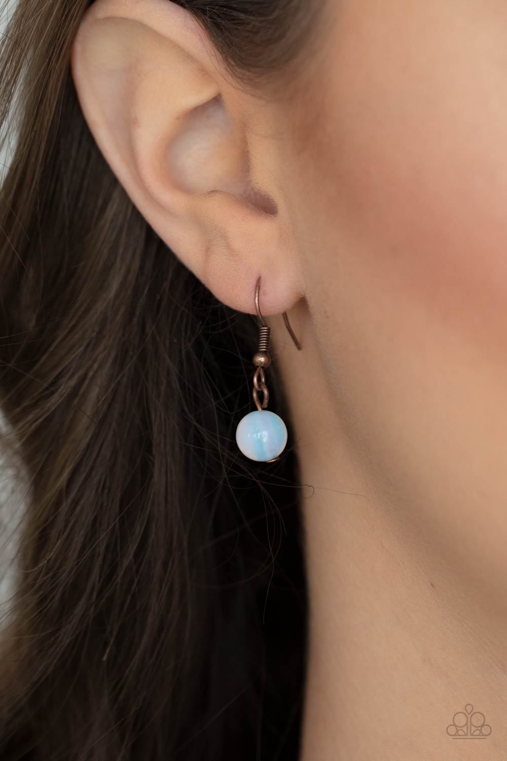 An oversized moonstone is pressed into a copper oval frame, outlined with an unexpected irregular shaped frame. The eye-catching pendant suspends from a double strand of natural cord below the collar for a mysterious finish. Features an adjustable clasp closure.