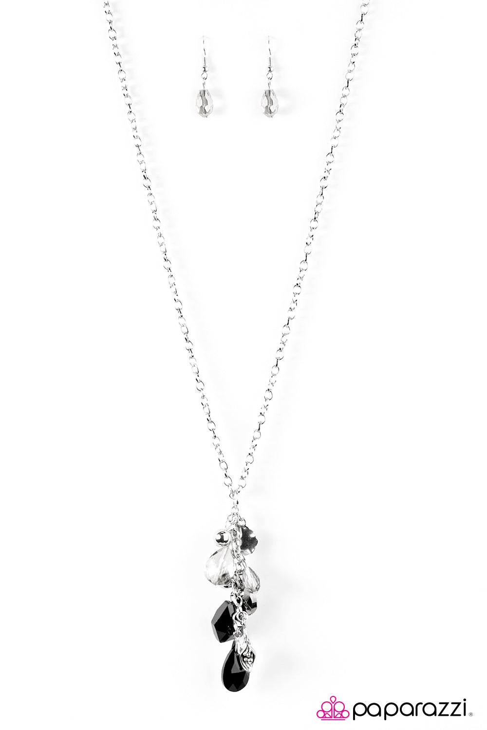Sparkling black gems join floral charms and silver beads along a silver chain, creating a whimsical tassel. The glassy gems feature glittery faceted surfaces, adding a timeless shimmer to the enchanting palette. Features an adjustable clasp closure.