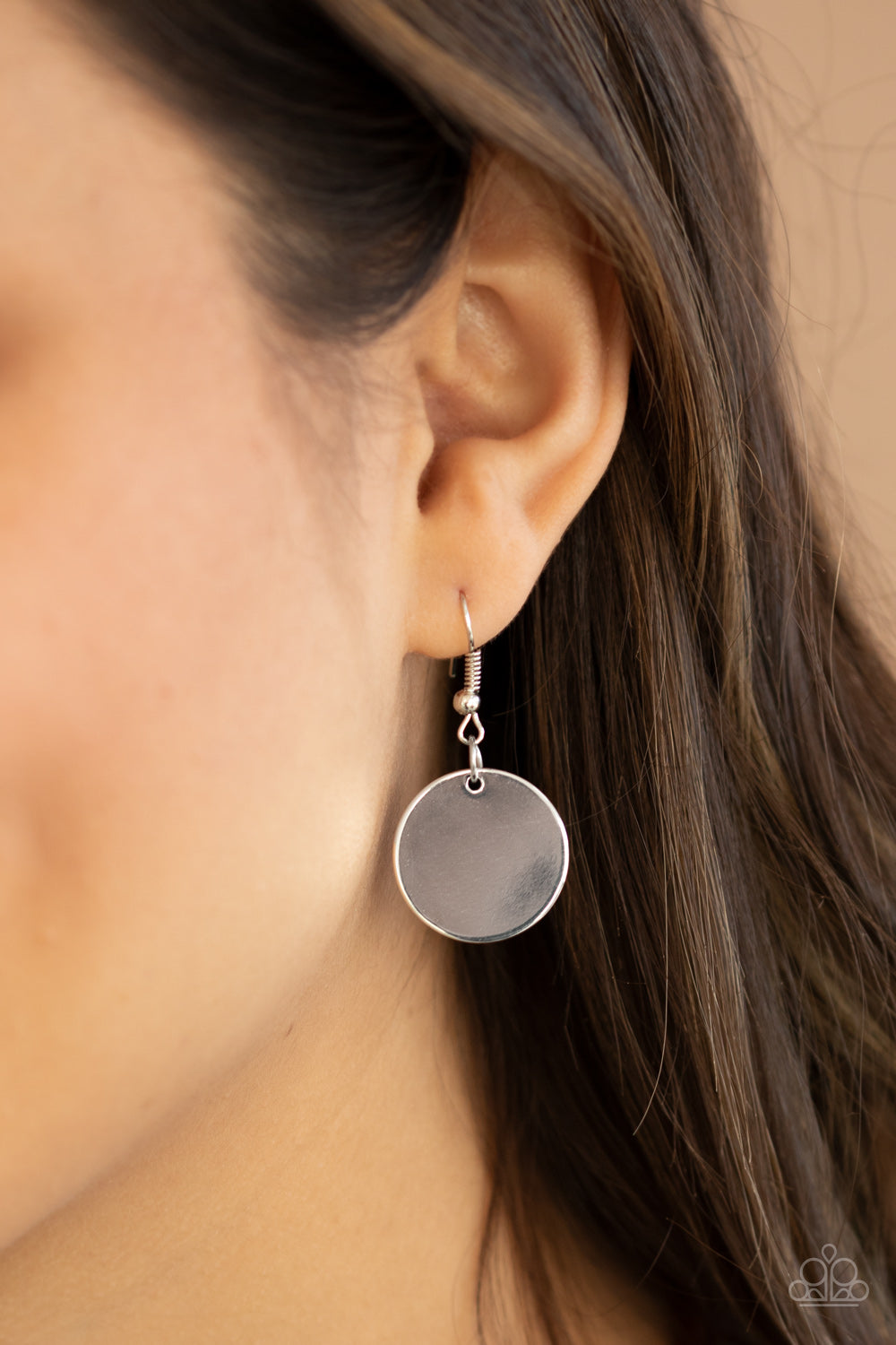 A trio of silver, red, and fuzzy cheetah print discs overlap into an adjustable pendant along rows of shiny brown cording for a wildly retro look.
